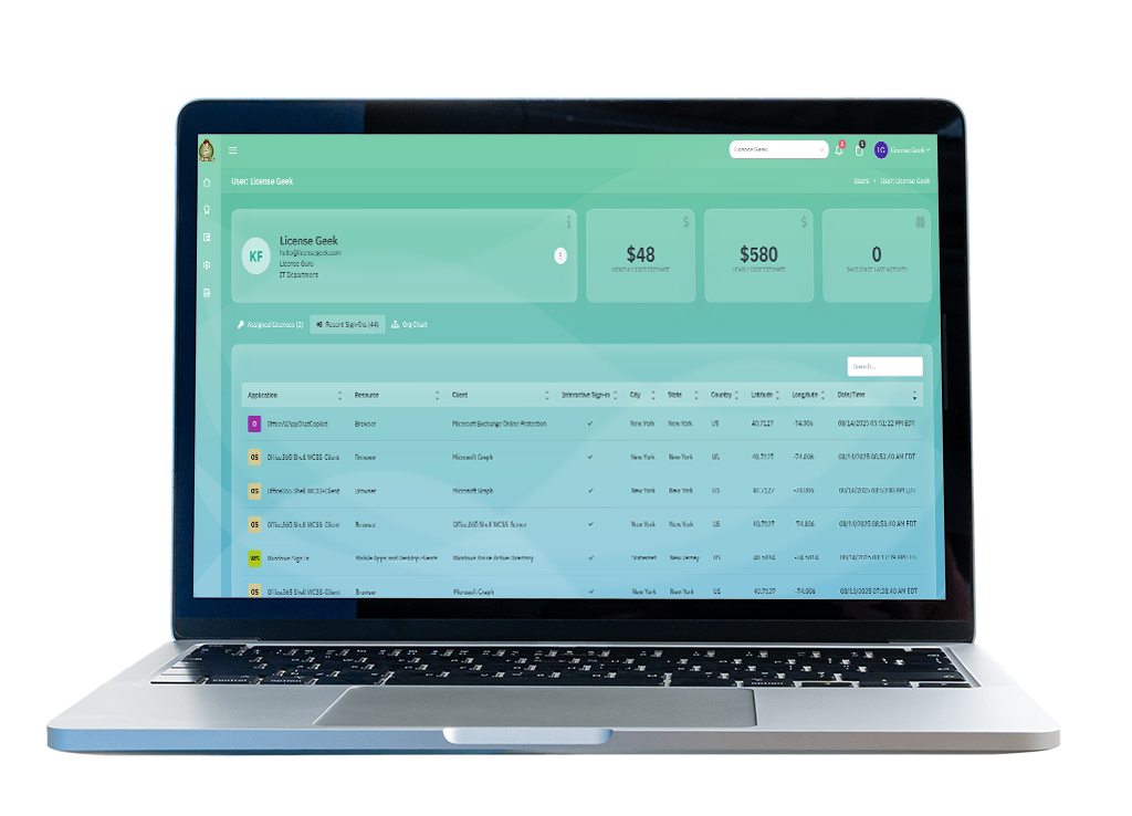 We integrate directly with your Microsoft Tenant to continuously gather license usage data, providing insights and proactive alerts when licenses are no longer in use, so you can reclaim unused licenses, reduce waste, and optimize your spend.